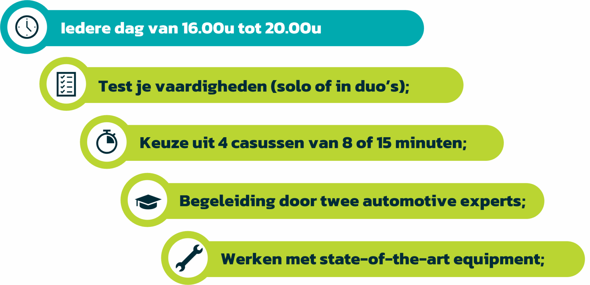 In de Auto Prof Studenten Challenge ga je solo of in duo’s de strijd aan in vier casussen. Je wordt begeleid door automotive experts Tom Seldenthuis en Leander Engelbertink. Je werkt met state-of-the-art equipment en je kunt elke beursdag prijzen winnen. De Challenge draait elke dag van 16.00 tot 20.00 uur.